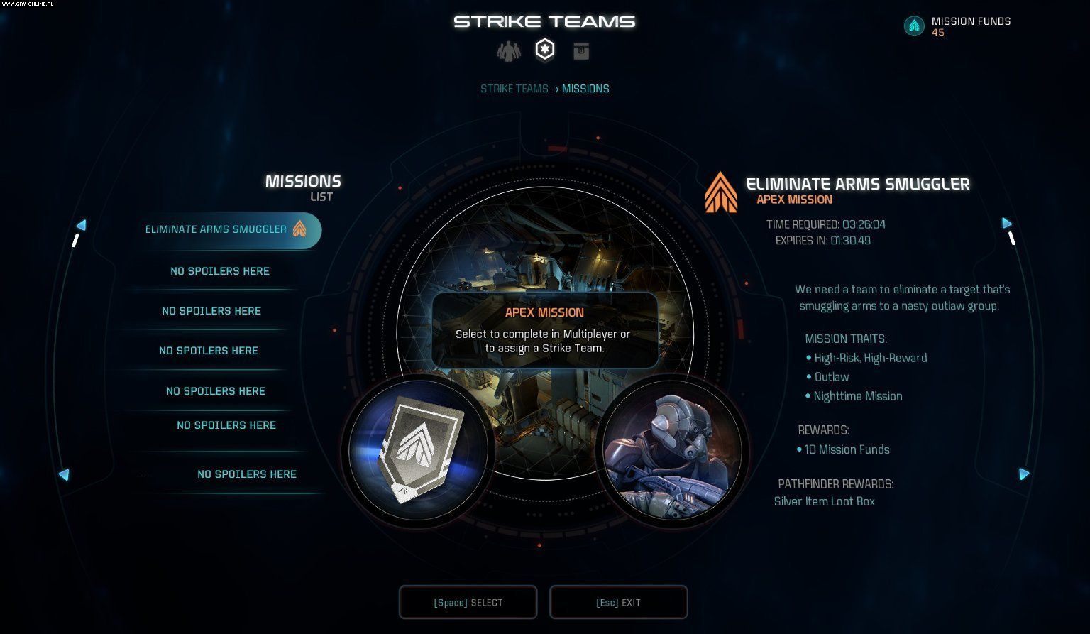 Zacznijmy od tego, że każda drużyna jest generowana losowo i nie możemy jej w żaden sposób personalizować. Na ich rekrutację musimy wydać tzw. Mission Funds, które zdobywamy albo za pomocą misji Strike Team, albo przez granie w trybie wieloosobowym. Wszystkie zaczynają z jedną cechą, co w pewnym sensie decyduje o jej przydatności do danego rodzaju zadań – np. grupa wyposażona w noktowizory sprawdzi się w operacjach nocnych, a kroganie w szturmach. Co ciekawe, oprócz zdobywania doświadczenia i kolejnych poziomów, drużyny szturmowe nabywają kolejne cechy: pozytywne lub negatywne, w zależności od sukcesu bądź porażki (nigdy jednak nie giną). Podobnie jak w przypadku Dragon Age: Inkwizycji, misje typu Strike Team zajmują czas rzeczywisty, zaś szansa sukcesu opisywana jest w sposób procentowy. Nic nie stoi na przeszkodzie, aby kilka oddziałów działało w tym samym czasie. Jeśli szturmowcy wrócą z tarczą, dostają pełną pulę EXP-a, a Ryder otrzymuje „specjalną nagrodę”, w przeciwnym wypadku w grę wchodzi tylko zredukowana liczba punktów doświadczenia. Z wpisów Fraziera wynika też, że gracz, oprócz podnoszenia poziomu, może również zapewnić drużynom szturmowym lepszy sprzęt, co zwiększy prawdopodobieństwo sukcesu. Warto dodać, że samodzielne wykonanie misji w trybie wieloosobowym sprawi, że otrzymamy zarówno nagrodę dla Rydera w kampanii solowej, jak i bonusy multiplayerowe. Ważną informacją jest ponadto fakt, że nie wszystkie zadania typu Strike Team można powtarzać – do tych grywalnych jedynie w trybie jednoosobowym można podejść tylko raz.
