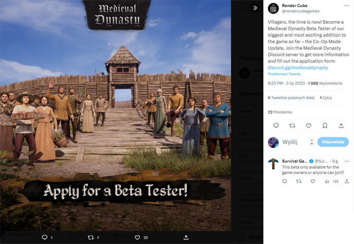 Zgodnie z zapowiedziami wystartowały zapisy na testy tryby co-op w grze Medieval Dynasty.