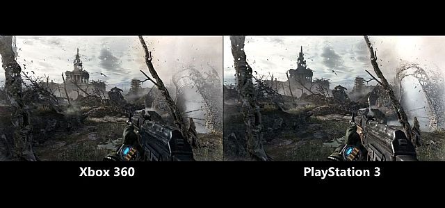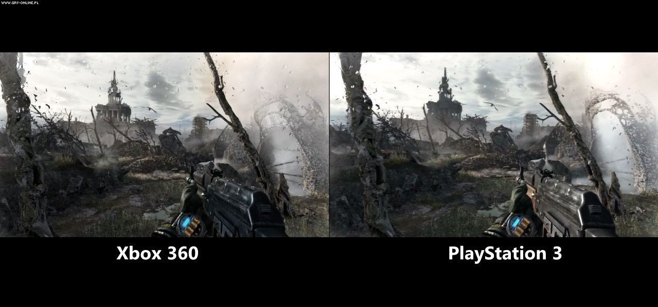Obie konsolowe edycje Metro: Last Light prezentują się bardzo przyzwoicie, oferując przy okazji płynną animację. Oczywiście nie ma w nich aż tylu dodatkowych efektów jak w wersji pecetowej uruchamianej na maksymalnych ustawieniach, co wcale nie przeszkadza dobrze się bawić. Gra nieco lepiej w poniższym porównaniu wypada na konsoli Microsoftu - głównie za sprawą ostrzejszych tekstur i bardziej szczegółowego dalekiego tła, co widać szczególnie we fragmencie rozgrywającym się na powierzchni.