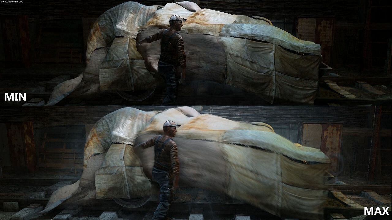 Nowe Metro jest grą bardzo piękną, byc może nawet najładniejszą w tej chwili pod względem samej oprawy wizualnej. Różnice pomiędzy maksymalnymi ustawieniami grafiki z wyłączonymi efektami PhysX i maksymalnymi, w których fizykę ustawiono na maksa nie jest specjalnie porażająca. Główne zmiany widać w rozdzielczości niektórych tekstur i nieco uboższym na minimum oświetleniu. Znika wtedy także część efektów specjalnych. Zmiany wprowadza także parametr teselacji - na przykład powierzchnia wody przy maksymalnym ustawieniu jest bardziej szczegółowa.