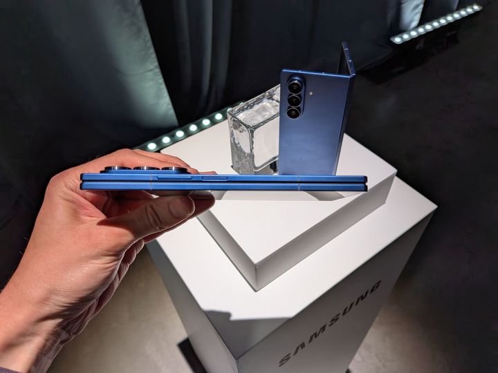 Nie ma co ukrywać – Fold7 robi wrażenie. Ten model przeszedł potężną kurację odchudzającą i właściwie złożony wygląda prawie tak, jak rozłożony poprzednik. To już nie jest cegła, a raczej smukły tablet. W granatowym kolorze prezentował się całkiem nieźle i znacznie lepiej od stonowanej wersji srebrnej i czarnej. W oficjalnym sklepie producenta ma być też dostępna wersja miętowa.