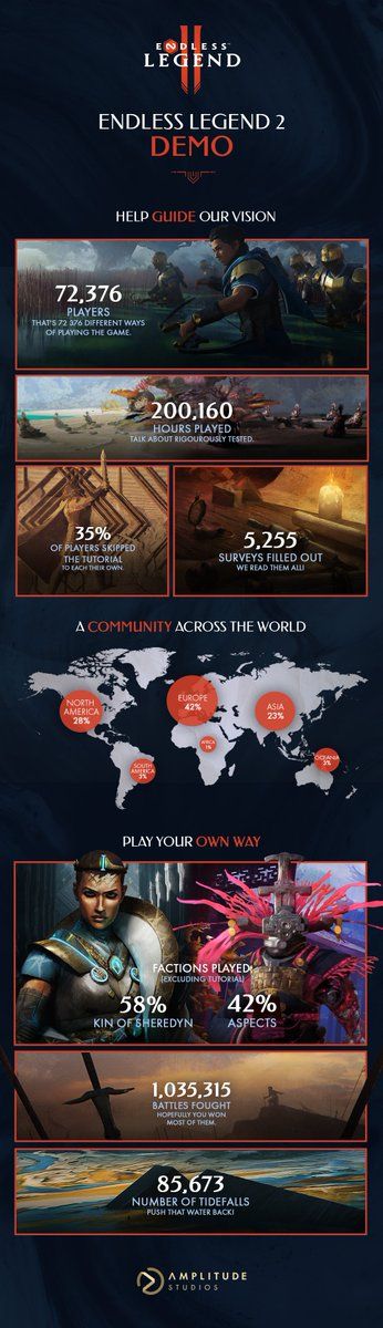 Niejako przy okazji opublikowano infografikę, na której podzielono się szeregiem liczb związanych z demem Endless Legend 2. Możemy się z niej dowiedzieć między innymi, że: