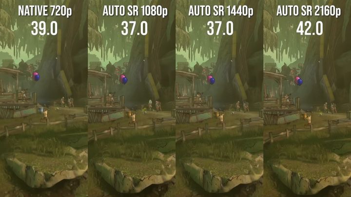 AutoSR nie działa w ten sam sposób, jak np. DLSS. Technologia oparta na konwolucyjnej AI analizuje obraz i dodaje brakujące szczegóły na podstawie wyuczonych schematów. Aby jednak przeskalować go do pożądanej rozdzielczości, są wykorzystywane dodatkowe algorytmy szybkiej zmiany rozmiaru. Jeśli skalujemy np. z 720p do 4K, nie oznacza to, że wynik pracy AutoSR to właśnie 4K – ostateczny rezultat jest „dociągany” przy pomocy filtrów.