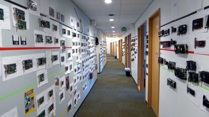 Pracownicy firmy Microsoft podzielili się zdjęciami prezentującymi dość nietypową ekspozycję w swoim biurze. Na ścianach pomieszczenia widzimy setki starych kart grafiki, które przez lata służyły firmie w czasie prac nad interfejsem graficznym Direct3D. Każda z nich jest okraszona stosownym opisem i przyporządkowana do danego okresu.