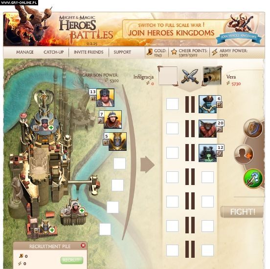 Rozgrywka nie należy do szczególnie skomplikowanych. Gracze wcielają się w rolę dowódcy armii wybranej przez siebie frakcji. Do dyspozycji mają własny „zamek”, który mogą rozbudowywać i w którym werbują swoje oddziały. Przeciwnicy dobierani są losowo z uwzględnieniem podobnych sił. Można też wyzwać do walki kogoś ze znajomych.