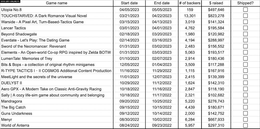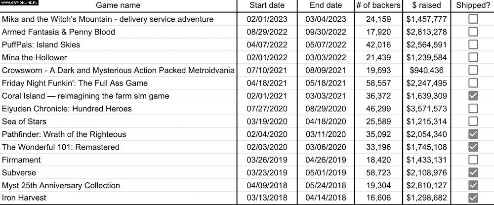 Co ciekawe, sytuacja ta ma się zgoła inaczej w przypadku gier planszowych. Od listopada 2022 roku próg miliona dolarów przekroczyło aż 15 projektów.