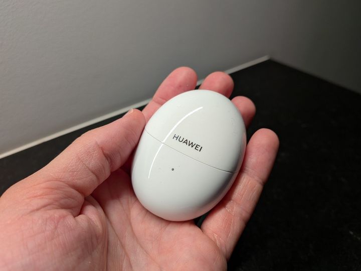 To jakieś jaja. Albo raczej jajo. Etui FreeBuds 6 ma jajowaty kształt i jest wyjątkowo smukłe, przez co bardzo wygodnie nosi się je w kieszeni spodni, łatwo też wsunąć je np. do niewielkiej przegródki w plecaku czy torbie. Dostajemy klasyczny biały, błyszczący plastik, na którym na szczęście nie widać za bardzo odcisków palców. Jak to jednak bywa z takim wykończeniem, zbiera mikro ryski i z czasem może nieco stracić na powabności.
