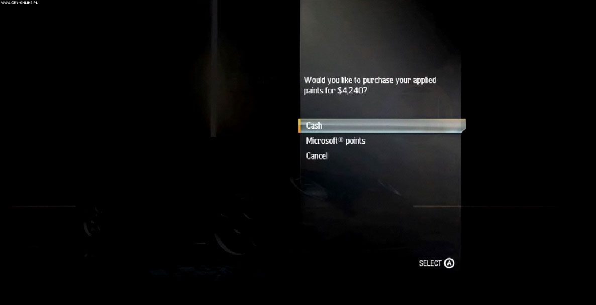 W serwisie GameTrailers możemy zobaczyć prezentację niektórych możliwości tuningu samochodów, póki co tylko optycznego, w nadchodzącym Need for Speed: Undercover. Jak zwykle będzie można wóz przemalować, wybrać matowy lub tradycyjny rodzaj lakieru, czy też przyozdobić auto vinylami, a wszystko to, jak zapewnił przedstawiciel podległego EA studia Black Box, zostanie zrealizowane w sposób przejrzysty i łatwy w obsłudze. Zresztą sami możecie się o tym przekonać oglądając wspomniany filmik. Jest w nim jednak pewien bardzo interesujący fragment, którego początkowo możecie nie dostrzec, otóż wszelkie interesujące nas ulepszenia będą do kupienia za punkty Microsoftu. Okno z zapytaniem (screenshot poniżej), czy chcemy wybrać taką właśnie opcję zapłaty pojawia się w prezentacji dosłownie przez sekundę, tak więc aby mu się lepiej przyjrzeć należy włączyć pausę dokładnie w czasie 2:16.