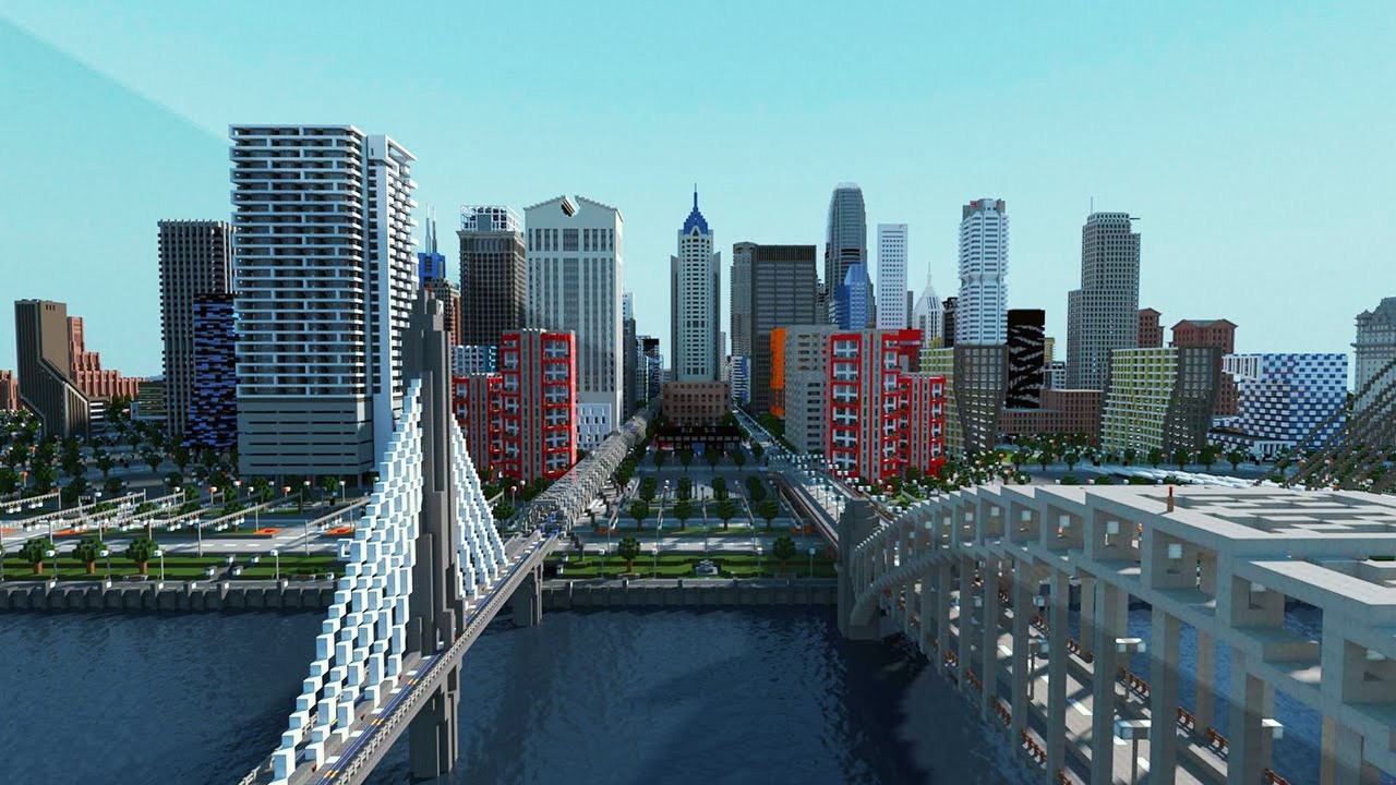 Patrząc na zamieszczoną powyżej ilustrację, na pierwszy rzut oka można odnieść wrażenie, że ma się do czynienia z jakąś stylizowaną pocztówką. Dopiero po bliższym przyjrzeniu się zauważamy, że to tak naprawdę screen z Minecrafta. Wrażenie robi zarówno rozmiar metropolii (mapę znajdziecie poniżej), jak i jej szczegółowość.
