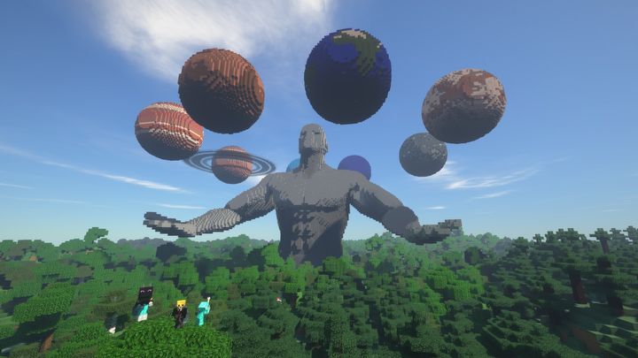 Internauta podkreśla, że tak krótki czas konstrukcji to zasługa długich przygotowań i planowania, choć nie obyło się też bez pewnej pomocy. Użytkownik sam stworzył infrastrukturę do zbierania zasobów (jako że był to zupełnie nowy serwer), ale jego znajomi pomogli mu zebrać surowce (tj. bloki) potrzebne do zbudowania planet. Podobnie jak w przypadku innych graczy, nie obyło się też bez skorzystania z programów trzecich: q3v1 musiał nauczyć się obsługi Blendera i Litematiki (moda do wgrywania obiektów jako schematów). W tym pierwszym zmodyfikował model człowieka, który przekonwertował darmowym narzędziem na woksele, a następnie zaimportował do swojego świata i ustawił klocki zgodnie ze wzorem. To samo zrobił z planetami, przy czym na końcu użytkownik zdecydował się nieco poprawić ich wygląd w trybie kreatywnym.