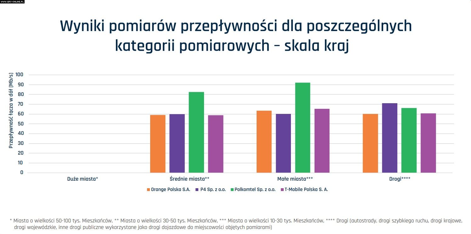 Jak można zauważyć na powyższym wykresie najlepszą szybkość przesyłu wynoszącą od 80 do ponad 90 Mbps oferuje Polkomtel. Warto jednak zaznaczyć, że wartości te dotyczą jedynie terenów miast. W przypadku dostępu do Internetu na trasie króluje P4.