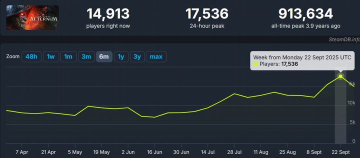 Po długim czasie MMO New World: Aeternum powróciło do setki najchętniej kupowanych produkcji na Steamie. Tytuł od Amazon Games prawdopodobnie przyciaga graczy darmową zawartością, która trafi do gry w październiku.