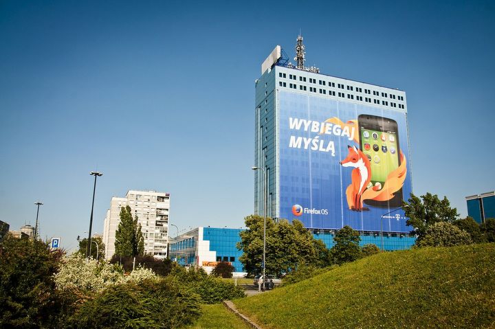 Wielkie billboardy, w tym także na akademiku Riwiera (taki wielki, niebieski wieżowiec) w Warszawie i w wielu innych miastach Polski, pokazują otwarty system operacyjny – Firefox OS od fundacji Mozilla. Tak, tych, od przeglądarki internetowej.