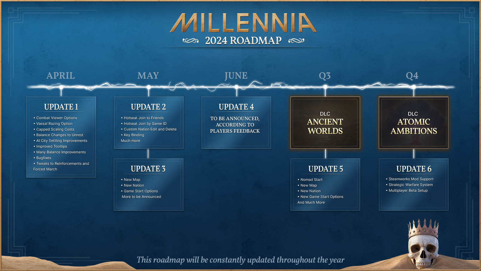 W roadmapie rozwoju gry rozpisano sezony: w pierwszym dostaniecie konia, w drugim dostaniecie nowe questy, a w trzecim możliwość kupna domku. W roadmapie pokuty na poszczególne miesiące rozpisuje się fixy, naprawy mechanik, optymalizacji, ale również content (spójrzcie, jak wygląda roadmapa naprawy do gry Millennia). Roadmapa rozwoju gry płynnie i niezauważenie zamienia się w roadmapę przeprosin.