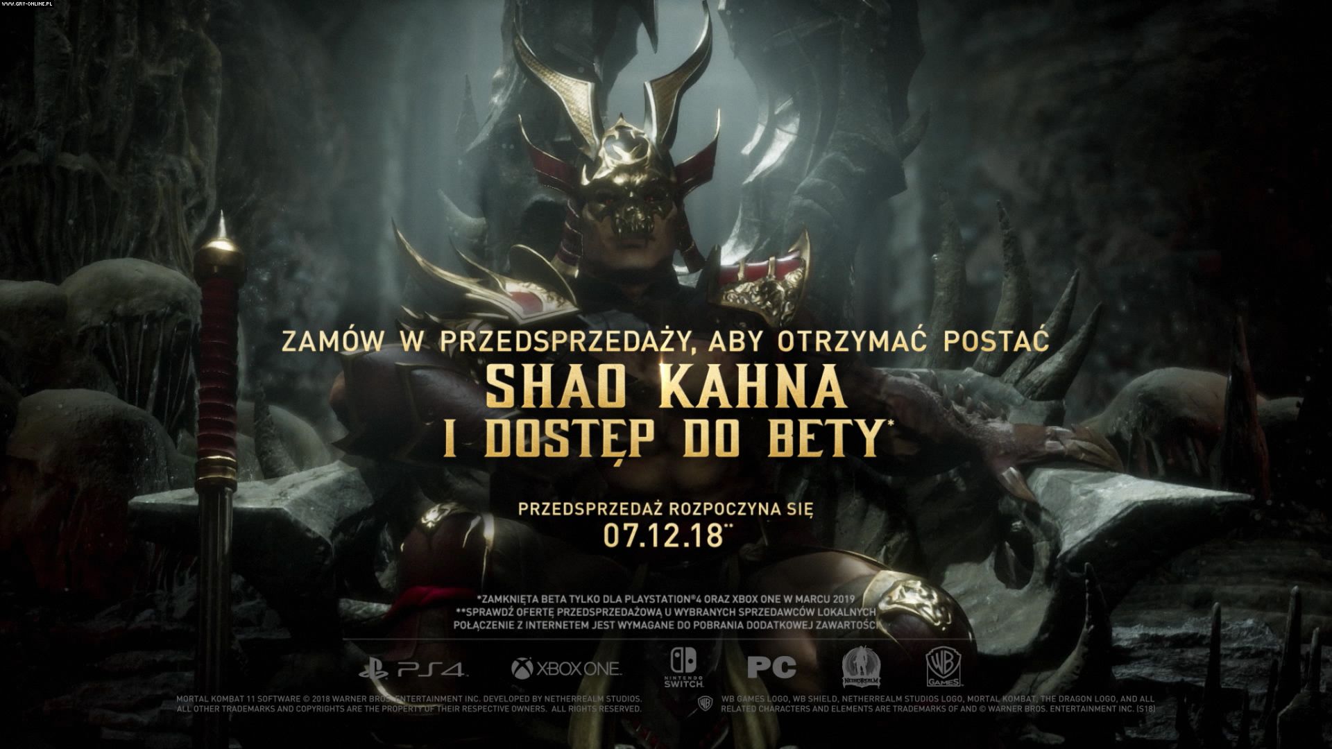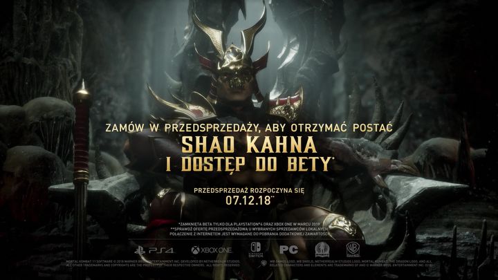 Zamów grę w przedsprzedaży, aby otrzymać grywalną postać Shao Kahna i dostęp do bety.