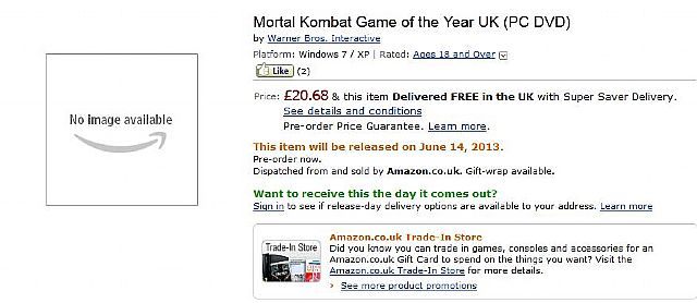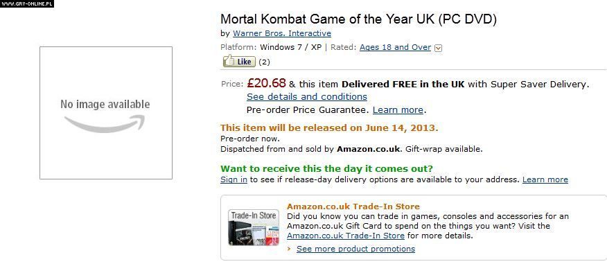 Czyżby najnowsza odsłona bijatyki Mortal Kombat miała pojawić się na PC? Wydana w 2011 roku gra trafiła do tej pory na konsole Xbox 360 i PlayStation 3, a także PS Vitę. W ostatnim czasie nic nie wskazywało bezpośrednio na to, że jeżeli chodzi o tę produkcję Warner Bros Interactive jest zainteresowane rynkiem komputerowym. W ofercie brytyjskiego sklepu Amazon pojawiło się jednak zamówienie przedpremierowe na pecetową odsłonę tytułu, w wersji Game of the Year, zawierającą najprawdopodobniej wszystkie wydane do tej pory DLC z dodatkowymi postaciami i kostiumami. Na stronie produktu przeczytamy, że spodziewana premiera będzie miała miejsce 14 czerwca. Cenę wyznaczono na 20 funtów, a więc około 100 złotych. Internetowi sprzedawcy często na długo przed oficjalnym ujawnieniem gier dysponują związanymi z nimi informacjami, przedwcześnie ujawniając ich istnienie na swoich stronach. Nie wykluczone więc, że niedługo powinniśmy usłyszeć nieco więcej na temat portu.