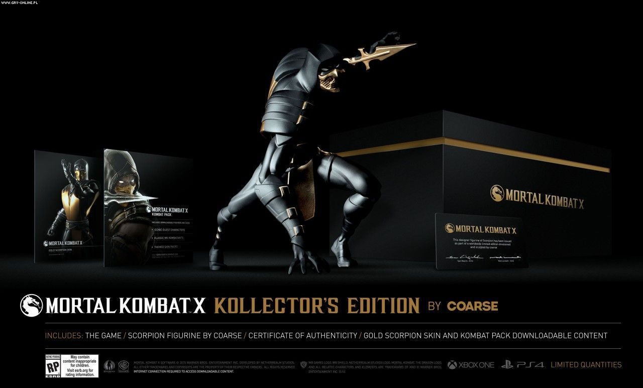 Studio NetherRealm i firma Warner Bros. Interactive Entertainment ujawniły edycje limitowane i kolekcjonerskie (w sumie cztery wydania) gry Mortal Kombat X. W skład najbogatszej z nich wchodzi m.in. figurka, komiks i dodatkowi grywalni wojownicy. „Kolekcjonerki” będą dostępne tylko dla konsolowców. Póki co nie wiadomo, ile z tych wersji kupimy też w Europie.