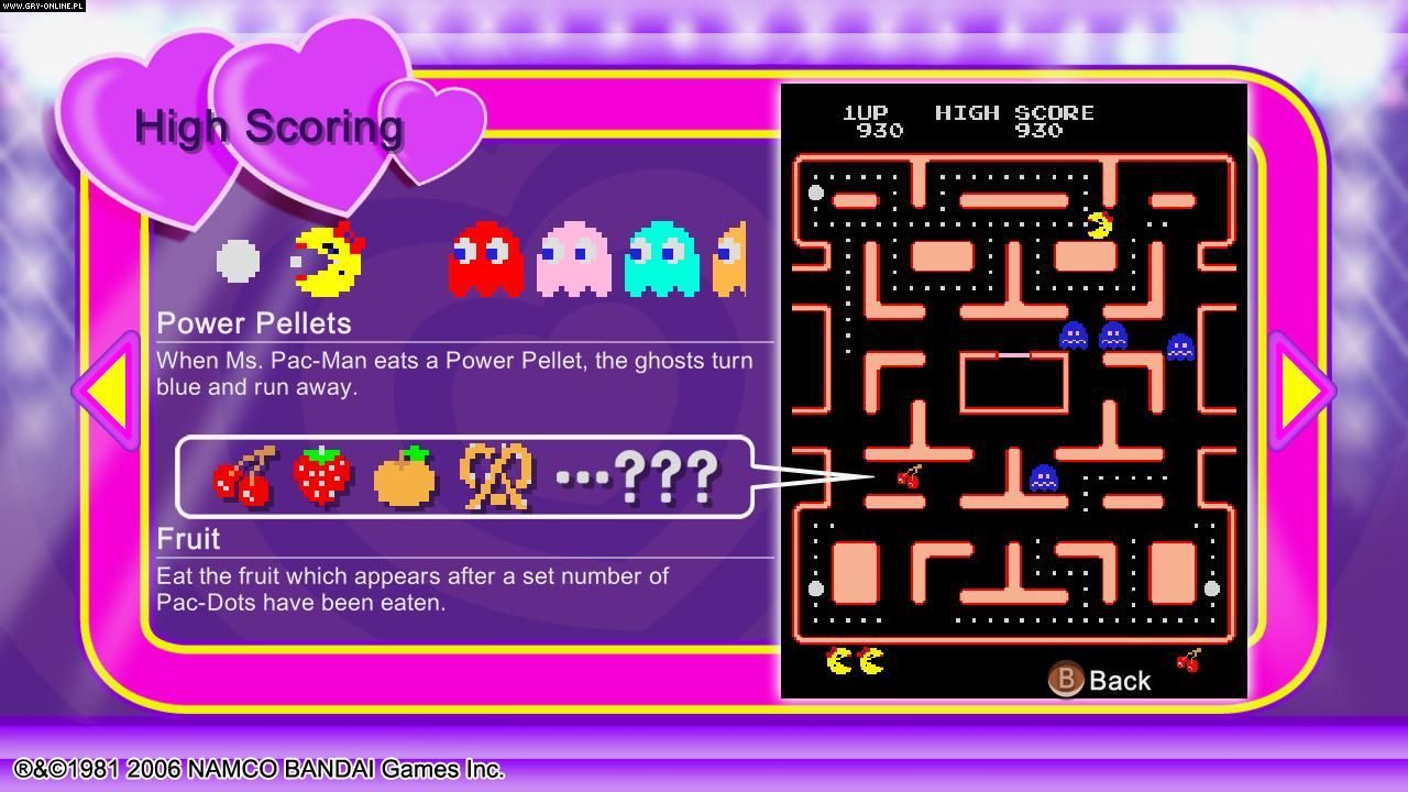 Pani Pac-Man znajdzie się zatem tuż obok swojego męża, który od dłuższego czasu zagrzewał jej miejsce w XBLA. Założenia samej gry nie odbiegają w żadnym stopniu od tych, zaprezentowanych podczas światowej premiery pierwszej automatowej gry z serii Pac-Man. Zadaniem gracza jest więc czyszczenie danej planszy ze wszelkich żółtych kuleczek, tzw. Pac-Dots oraz unikanie starających zagrozić się mu kolorowych duszków, które można unieszkodliwić połykając wcześniej specjalną kulkę mocy. W Ms. Pac-Man natkniemy się na 255 plansz, których charakterystyczną cechą będzie wzrastający poziom trudności.