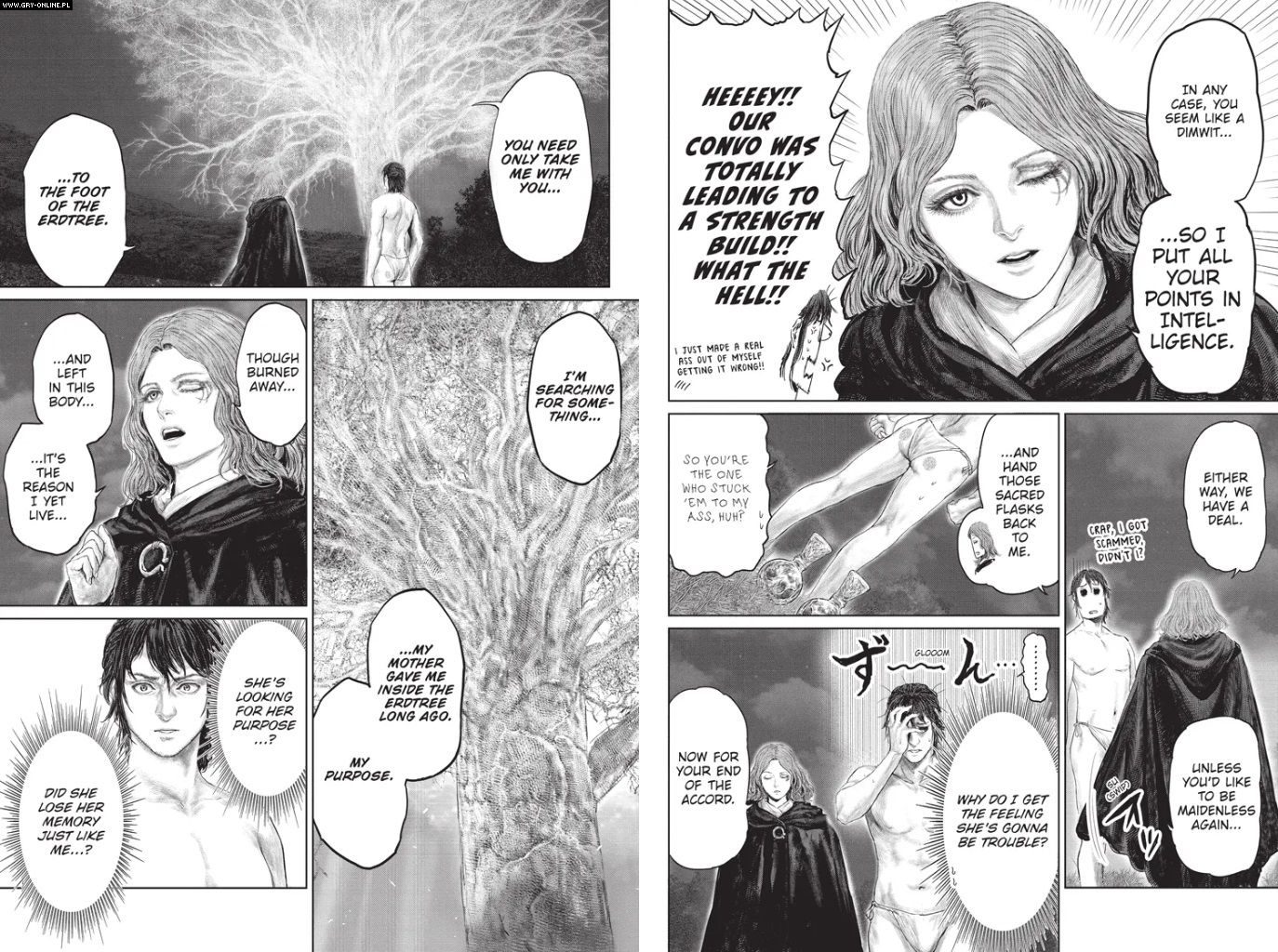 Jeżeli zastanawiacie się czym właściwie jest manga na podstawie Elden Ringa to spieszymy z odpowiedzią. Road to Erdtree to oficjalna manga autorstwa Nikiichiego Tobity opowiadająca historię przedstawioną w grze w absurdalny i miejscami niedorzeczny sposób.