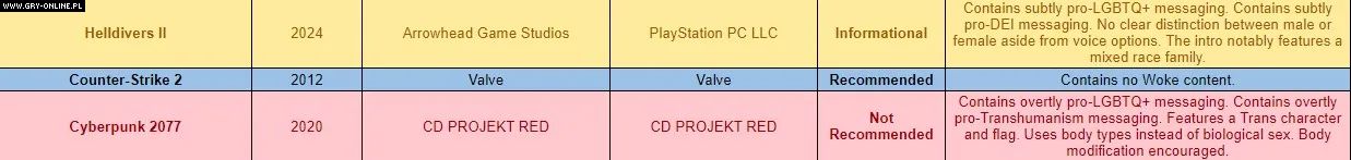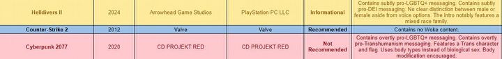 Odpowiedź na to pytanie brzmi: pojawia się loża kuratorów do spraw nie-woke’owatości. Jej motywy? „Umożliwianie graczom podejmowania świadomych decyzji dotyczących produkcji, które konsumują”. Ich metody? Wykrywanie wszelkich przejawów kultury woke i opracowywanie list, w których pojawiają się uzasadnienia, dlaczego akurat ten tytuł znalazł się na tej niejako czarnej liście.