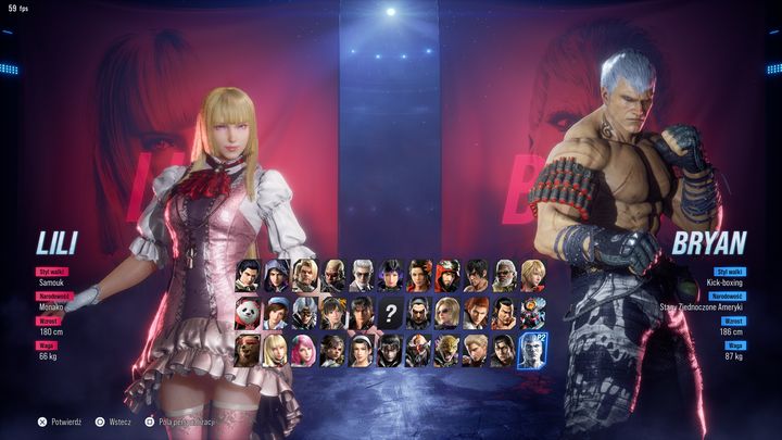 Drugi przypadek występowania opóźnień i spadku FPS to… wybór postaci. Nie miało znaczenia, czy testowałem Tekkena 8 na ustawieniach ultra czy niskich, na PC czy PS5. Przy zatwierdzaniu postaci zawsze dało się odczuć, że stabilność nieco spada. Być może zostanie to naprawione w następnych patchach. Sam problem nie jest mocno uciążliwy, nie wpływa negatywnie na odbiór gry, aczkolwiek należy o nim wspomnieć.