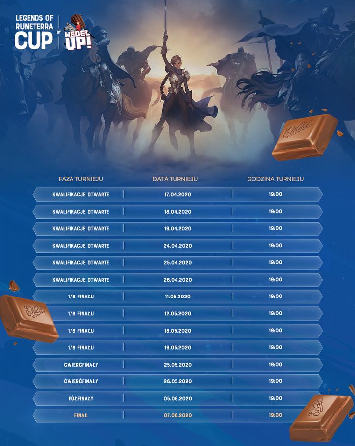 Trzymamy kciuki za wszystkich zawodników! Szczegółowe informacje wraz z regulaminem turnieju znajdziecie na naszej stronie. #zostanwdomu i śledź pojedynki zawodników w słodkim turnieju Legends of Runeterra CUP by Wedel Up!