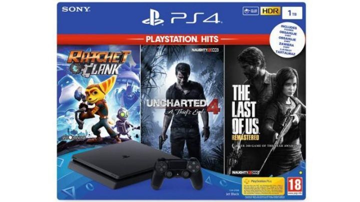 - Konsola SONY PlayStation 4 Slim 1TB + gra Days Gone + gra Ratchet & Clank + gra Uncharted 4: Kres Złodzieja + gra The Last of Us Remastered – Media Markt, 1299 zł (gra Days Gone zostaje dodana do zamówienia w koszyku)