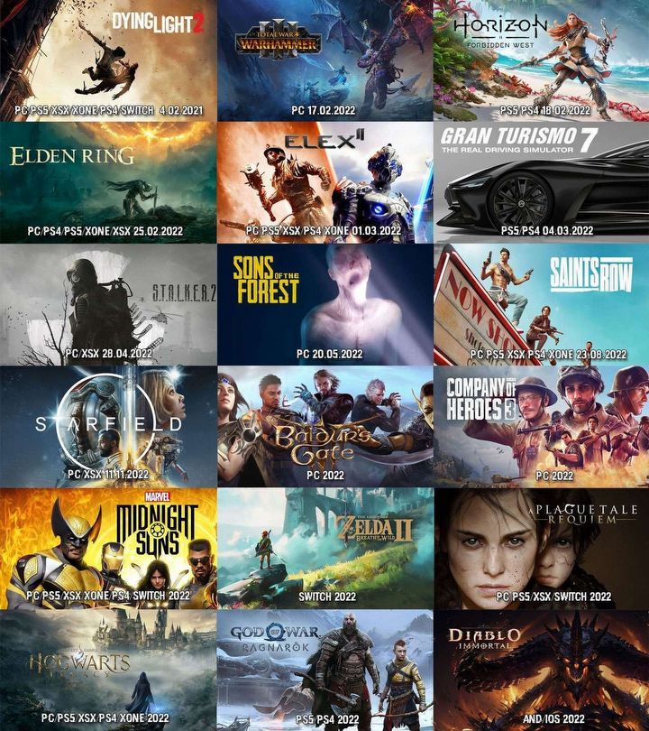 Nadchodzi rok 2022, a wraz z nim nowe gry. Potencjalnych hitów może być bez liku, dlatego zebraliśmy dla Was na jednym obrazku 18 tytułów naprawdę dużego kalibru, które są popularne w Encyklopedii Gier na GRYOnline.pl, a ich premierę przewidziano w następnych 12 miesiącach.