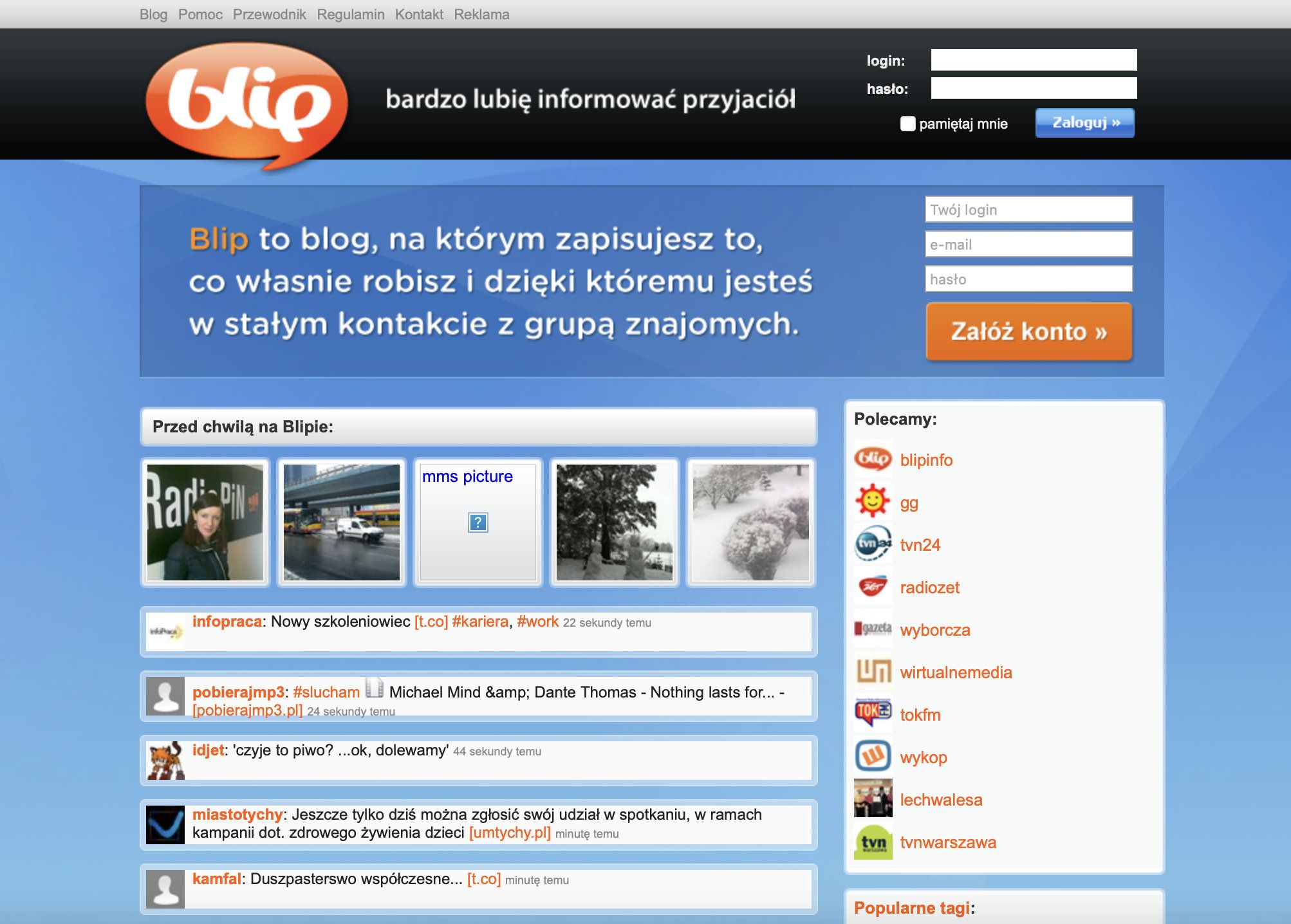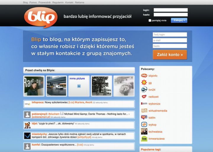 No i były też hashtagi, czyli w zasadzie wszystko co mikroblogerowi potrzebne do życia. Co ciekawe, można było też tam publikować za pomocą SMSów i MMSów – serwis przyjmował też zdjęcia i nagrania. Nie muszę mówić, że w 2007 roku, kiedy powstał serwis, zdjęcia i wideo z telefonu nie miały najwyższej jakości. Wkrótce do Blipa dołączyli celebryci (Agnieszka Frykowska, wspomniany Lech Wałęsa i wielu innych), media (np. Radio Zet i Gazeta Wyborcza), czy nawet ZUS.