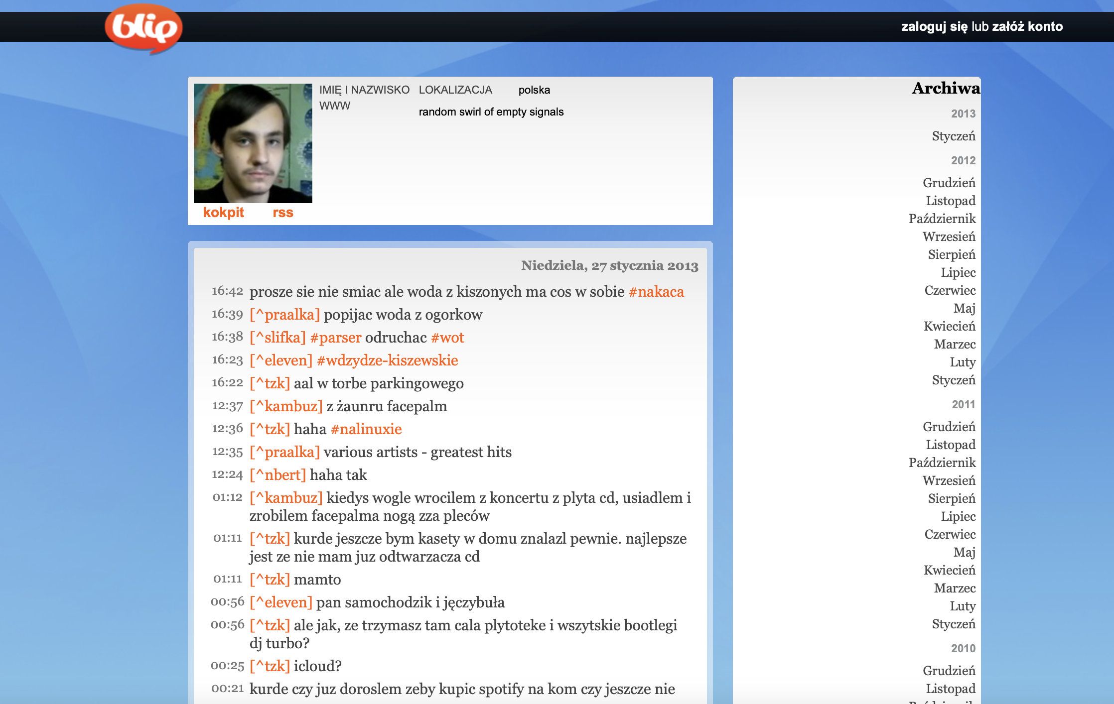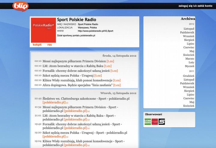 Blip nie był jedynym tego typu serwisem. Generalnie wybuchła wtedy moda na szybkie wrzucanie treści do internetu i komentowanie rzeczywistości - zwane właśnie mikroblogami. Nawet Nasza Klasa w rozpaczliwych próbach utrzymania się na rynku wprowadziła funkcjonalność mikroblogową i stworzyła swoistego „walla” rodem z Twittera i nazwała go „Śledzik”. Były też w Polsce serwisy takie jak Plom, Flaker, Spinacz, Blimp, Pinger, Twitt.pl i pewnie jakieś jeszcze - bardzo niszowe. Najśmieszniejsze jest to, że w większości z nich (a już na pewno w wyżej wymienionych) miałem założone konto… Tak, byłem nolifem.