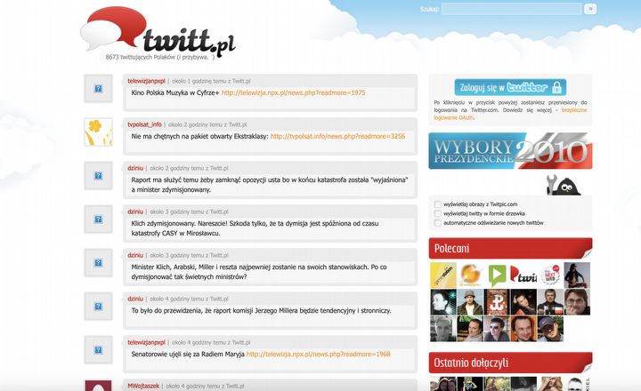 Kiedy na zachodzie Twitter zdobywał coraz więcej użytkowników (choć miał problemy, bo pomimo rosnącej popularności, to ciągle nie potrafił znaleźć modelu biznesowego), to w naszym kraju dominowała moda na robienie naszych wersji znanych serwisów. I tak, na wzór komunikatora ICQ powstało Gadu-Gadu, a na wzór MySpace powstało Grono.net (którego istnienie z racji bycia pierwszym polskim serwisem społecznościowym zasługuje na uwagę). Podobnie na wzór Twittera powstał polski Blip i wiele innych, choć oczywiście nie były to dokładne kopie.