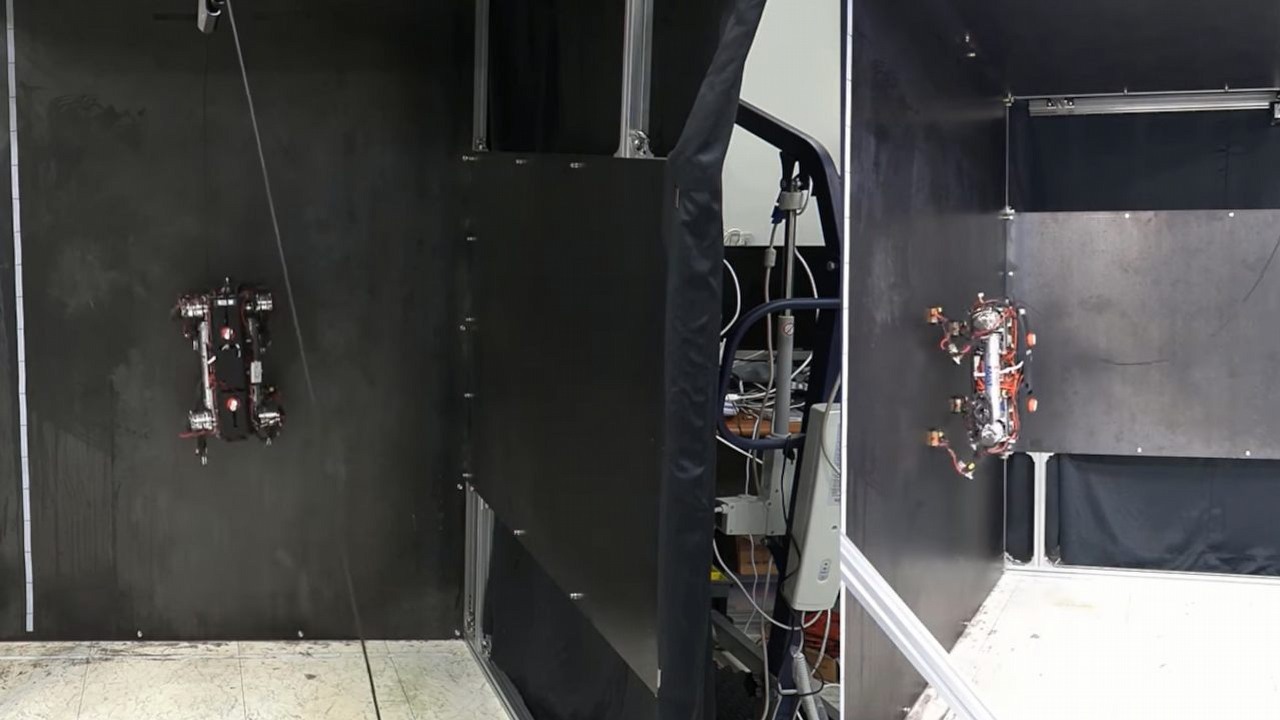 Czworonożne dzieło dzięki namagnesowanym łapom potrafi wchodzić na różne metalowe obiekty. W warunkach laboratoryjnych nie sprawia mu trudności zmiana położenia z powierzchni poziomej na pionową (ze zwykłej podłogi na ścianę), aby później bez żadnej wpadki dumnie kroczyć po suficie.