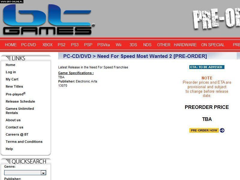 Sklep internetowy BT Games po raz kolejny został bohaterem plotek i spekulacji. W jego ofercie pojawiła się ostatnio gra wyścigowa Need for Speed: Most Wanted 2. Problem polega na tym, że firma Electronic Arts do tej pory nie zapowiedziała takiego tytułu.