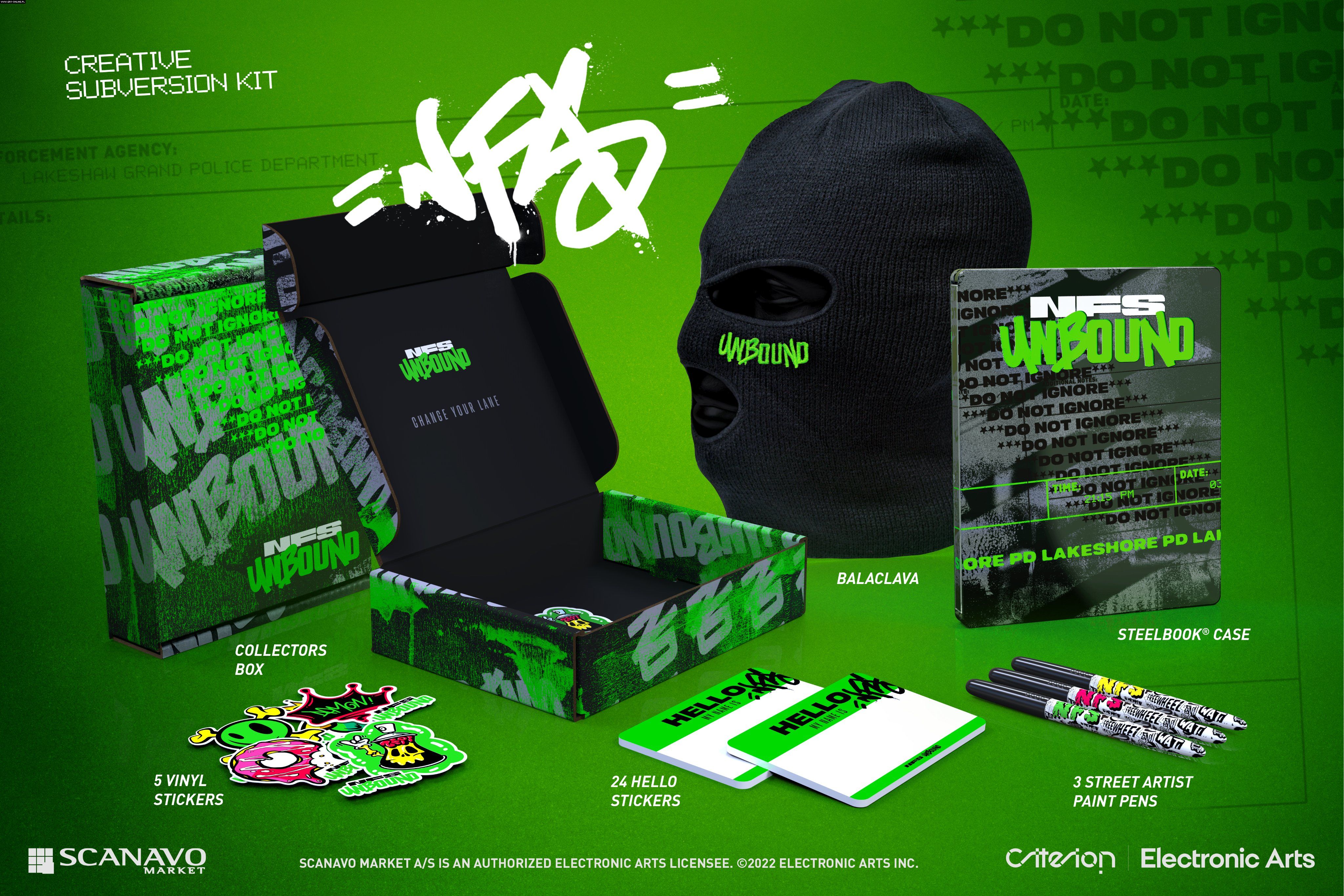 Francuski oddział sklepu Amazon (i być może wkrótce również polski) rozpoczął sprzedaż Need for Speed Unbound Creative Subversion Kit. Na kolekcjonerskie wydanie składają się steelbook, naklejki, kolorowe pisaki i kominiarka. Żadnego miniaturowego modelu samochodu (jak to miało miejsce przy okazji NFS Heat), a kominiarka... Co autorzy tej kolekcjonerki mieli na myśli? Nie mam pojęcia, ale może wyjaśni to fabuła gry.