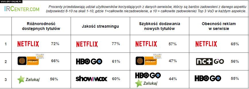 Serwis Wirtualne Media opublikował raport dotyczący najchętniej wybieranych przez Polaków serwisów VOD. Badanie przeprowadziła firma IRCenter. Największą popularnością może cieszyć się Cda.pl, z którego korzysta najwyższy odsetek polskich internautów. Wynosi on 29%. Na drugim miejscu znalazł się Netflix, którego ogląda 21% użytkowników. Na najniższym stopniu podium znalazły się ex aequo Ipla.tv oraz Player.pl, oglądane przez 20% badanych.