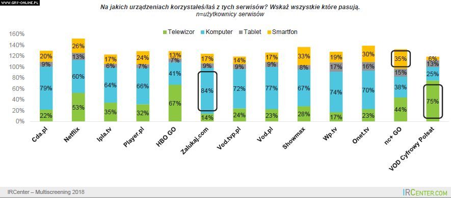 Co ciekawe, okazuje się, że lubimy oglądać nasze ulubione seriale i filmy na więcej niż jednym urządzeniu. Najbardziej multikanałowym serwisem również okazał się Netflix. Najpopularniejszą platformą na komputerach jest natomiast Zalukaj.com, telewizyjną zaś Cyfrowy Polsat. Jeżeli chodzi o możliwość oglądania treści na wielu urządzeniach, wysoko znalazł się również Showmax, który oficjalnie zakończył działalność w Polsce.