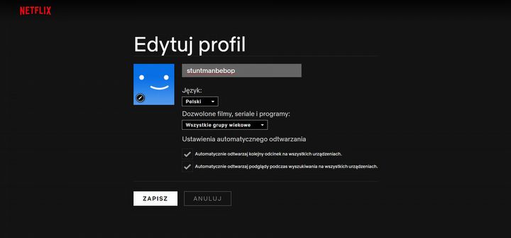 Dla każdego z użytkowników jednego konta można wprowadzić odmienne ustawienia, które będą działać na wszystkich urządzeniach. Netflix zastrzega, że modyfikacja może zostać wprowadzona z opóźnieniem. Dlatego najlepiej wymusić zastosowanie nowych ustawień przez przełączenie się między dostępnymi profilami. Zmian można dokonać w wersji desktopowej wchodząc w „Konto” (prawy górny róg), a następnie w „Zarządzanie profilami”.