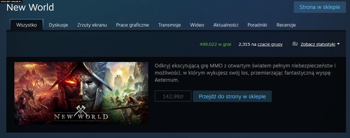 Nie trzeba było długo czekać na pobicie rekordu ustanowionego przez Valheim. New World przyciągnęło 499 tysięcy jednocześnie grających osób na Steamie, a ich liczba ciągle rośnie.