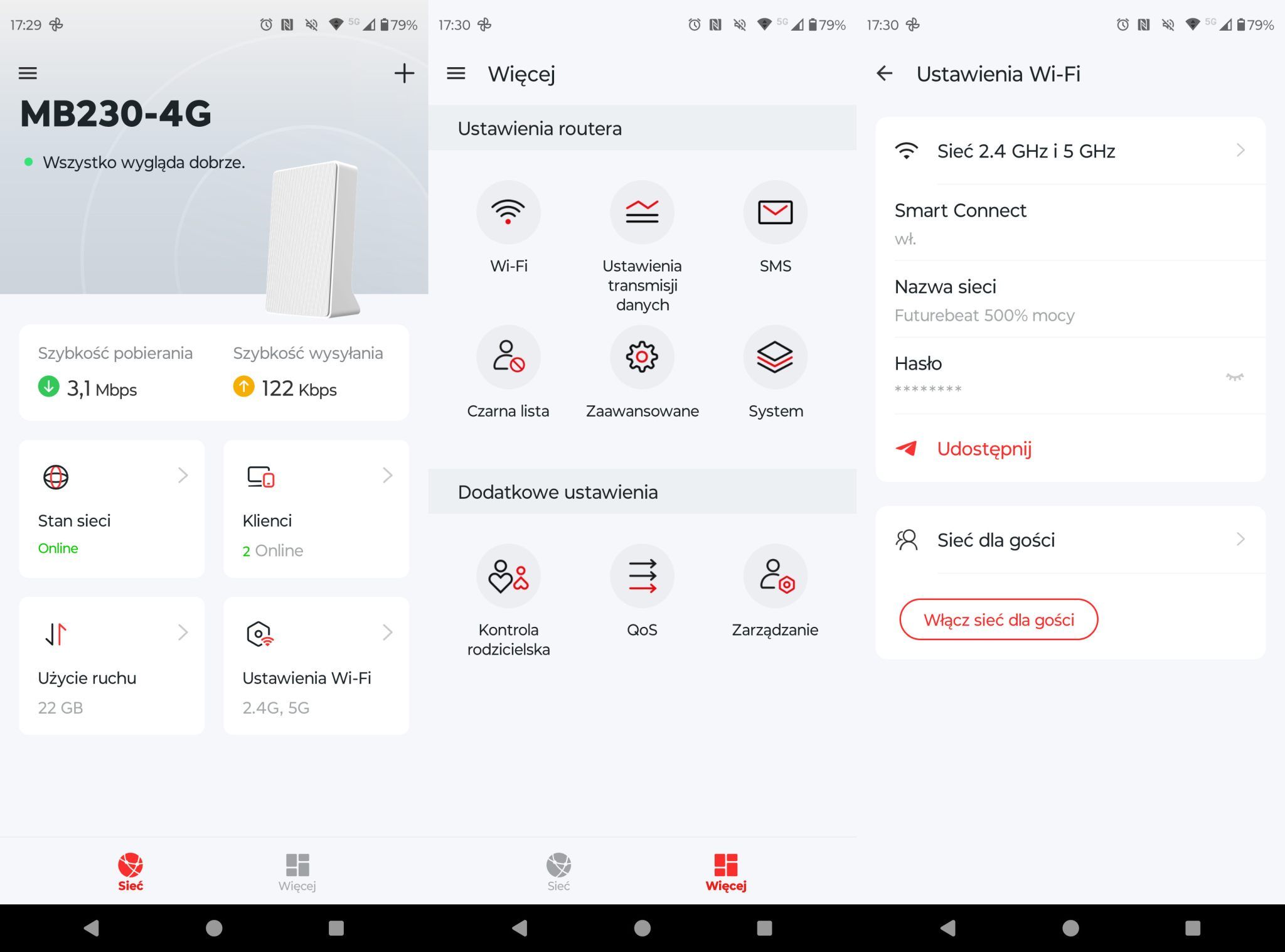 W czasie kilkunastu dni testowych, w czasie których korzystałem jedynie z tego routera, odnotowałem dwie sytuacje, w których wymagany był restart urządzenia, by przywrócić połączenie z internetem. Nie było to jednak uciążliwe, Mercusys MB230-4G nieźle sobie też radził pod większym obciążeniem, gdy kilka urządzeń starało się maksymalnie wykorzystać dostępną przepustowość LTE.