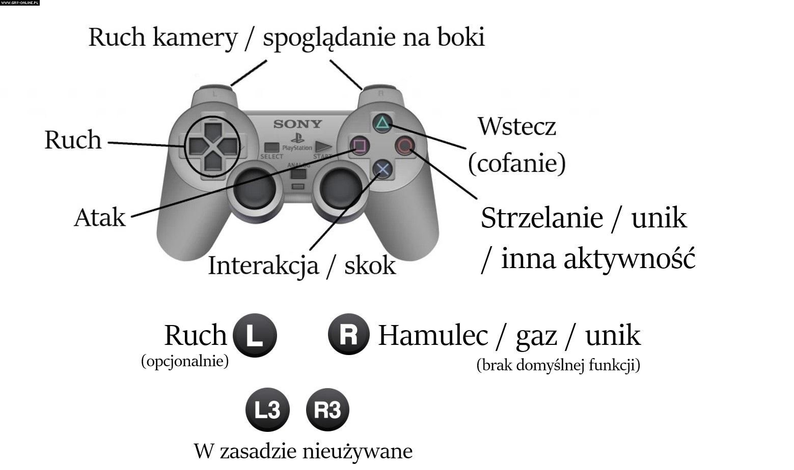 Do czego zatem służyła prawa gałka analogowa, zapytacie? Do robienia uników. W sumie nie było to złe rozwiązanie – być może właśnie dlatego przetrwało do czasów PlayStation 3 i zostało zaimplementowane choćby w Dante’s Inferno. Generalnie twórcy gier przez długi czas nie mogli znaleźć zastosowania dla prawego analogu. W serii Gran Turismo służył on np. do przyspieszenia i hamowania. U schyłku ery PS2 coraz częściej był wykorzystywany do ręcznego kontrolowania kamery – choćby w GTA: San Andreas, choć akurat w tym przypadku pozostawiono możliwość spoglądania na boki za pomocą L2 i R2 – ale rozwiązanie to stało się powszechne dopiero na PS3.