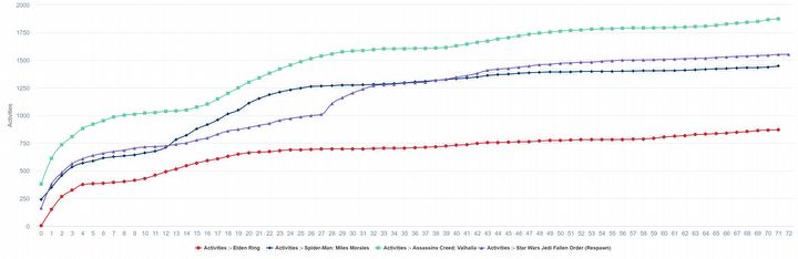 Zacznijmy od raportu firmy Fancensus, który przedstawił Ryan Janes w artykule dla serwisu Games Industry.biz. Grupa sprawdziła zainteresowanie prasy poszczególnymi grami ujawnionymi na targach E3 2019 lub w tym roku, porównując liczbę artykułów poświęconych każdej z tych produkcji opublikowanych w ciągu 72 godzin od ogłoszenia. Na przykład Assassin’s Credd: Valhalla była omawiana w tekstach częściej niż jakakolwiek gra pokazana w trakcie targów E3 2019. Uwzględnia to takie tytuły, jak Elden Ring oraz Star Wars Jedi: Upadły Zakon.
