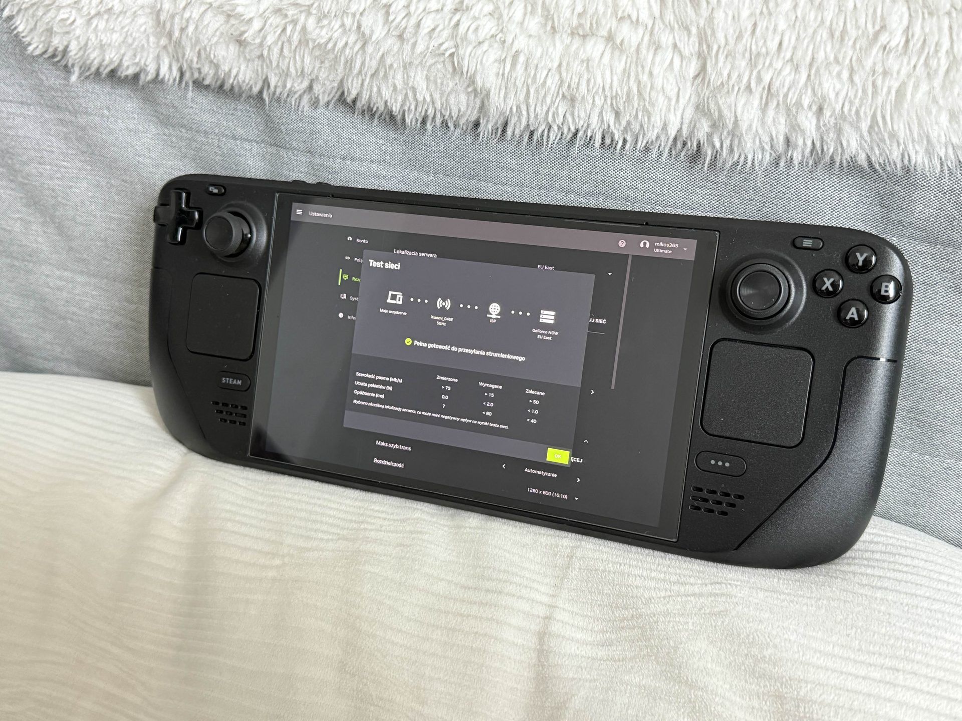 Kolejną rzeczą, która zupełnie przypadkiem przyszła mi do głowy było podłączenie Steam Decka z GeForce NOW pod telewizor. No bo w końcu po coś mam tego docka z portami HDMI i Ethernet. Rezultat okazał się świetny, bowiem Steam Deck pozwala na wysyłanie do telewizora sygnału w 4K i 60 klatkach na sekundę. Wszystko działało naprawdę nieźle po Wi-Fi, ale mogłem od czasu do czasu zobaczyć jakieś opóźnienie, szczególnie w grach wyścigowych. Problem rozwiązało podłączenie do docka kabla Ethernet i wtedy doświadczenie było naprawdę fantastyczne.
