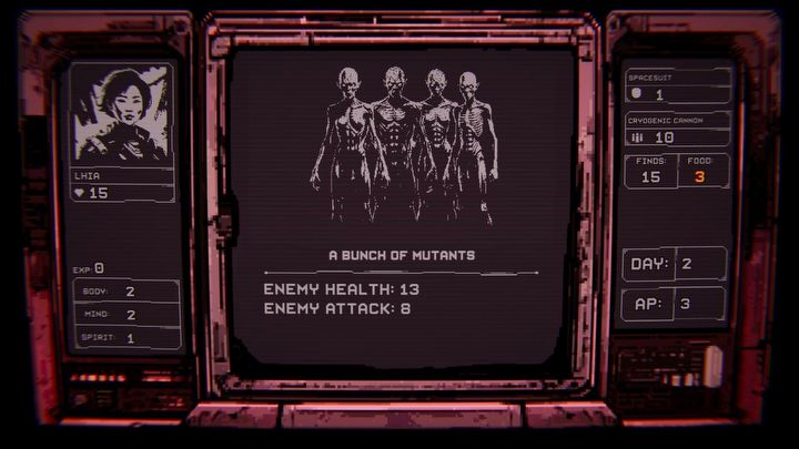 Tworzymy naszego bohatera, dzieląc punkty statystyk i wsiąkając w naszą pierwszą przygodę. Demo oferuje wstęp do większej kampanii, gdzie wyruszamy w podróż poprzez Wrakowisko i wybieramy naszą ścieżkę. Każdy kafelek zabiera cenne punkty akcji, których wyczerpanie kończy dzień. Wybory dzielą się na te stosunkowo bezpieczne (jak znalezienie broni, towarzyszy, żywności), te które mają pewien stopień ryzyka lub testujące nasze statystyki, ale też te, które zmuszają nas do walki.