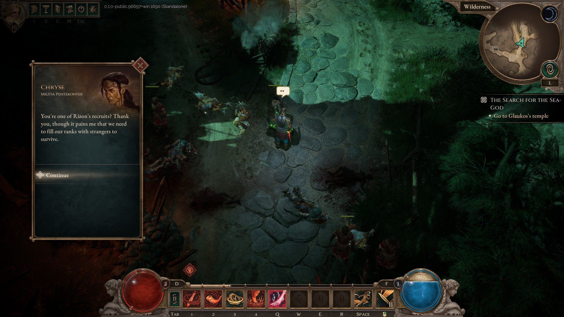 Ta zaś jak najbardziej się sprawdza. Studiu Grimlore udało się osiągnąć balans między nowoczesnością a oldskulowym feelingiem z Titan Questa i Grim Dawna. Nawet animacje i „blur” pozostawiany przez ostrza mają w sobie coś z uroku tamtych gier. Jednocześnie zaś starcia są bardziej dynamiczne, zwłaszcza te z bossami, ale też z bardziej wyjątkowymi przeciwnikami „w polu”. Musimy więcej manewrować, odpowiednio się pozycjonować i mądrze wykorzystywać limitowane cooldownem uniki oraz wyczerpujące się mikstury życia i many. Przy tym, choć animacje nie są aż tak doskonałe jak w Diablo 4 czy Path of Exile 2, walka sprawia przyjemne wrażenie. Przeciwnicy atakują w raczej średnich pod względem liczebności grupach, nie napadają na nas ich nieprzebrane hordy, a mimo to bitwy i tak są wystarczająco dynamiczne.