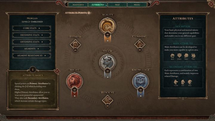 Wiele zależy też od buildów postaci. System rozwoju stanowi rozwinięcie tego, co znamy z Titan Questa. Znowu zaczynamy jako bezklasowy bohater, któremu wybieramy po kolei dwie specjalizacje, ostatecznie składające się na unikatową profesję. Mechanizmy te okazują się całkiem głębokie – najpierw inwestujemy w cztery podstawowe statystyki, od których zależy, czy spełniamy wymagania naszego sprzętu, a przy tym mają wpływ na to, jaki typ obrażeń zapewnia wyższe bonusy. Potem bierzemy się za rozwijanie umiejętności. Dostęp do wyższych pułapów uzyskujemy, gdy przyznajemy kolejne poziomy boskości danemu drzewku – wtedy możemy inwestować klasyczne punkciki.