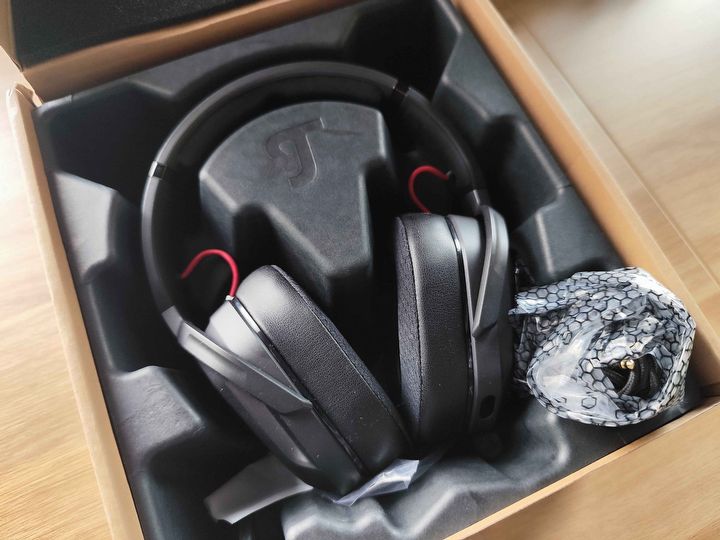 Gorzej prezentuje się komfort użytkowania. O ile przy krótszych sesjach nie miałam większego problemu z korzystaniem z tych słuchawek, tak dłuższe sesje robią się męczące. Na co dzień korzystam z Razerów Barracuda X, które ważą 250 g i dość luźno leżą na mojej głowie. Przywykłam więc do dość lekkich konstrukcji. Tymczasem Teufel Cage Pro jest zdecydowanie cięższy i dociska zdecydowanie mocniej. Powoduje to, że po kliku godzinach czułam ból uszu. To jednak kwestia bardzo indywidualna i wynika zarówno z kształtu głowy i uszu, jak i preferencji związanych z kształtem i wagą słuchawek.