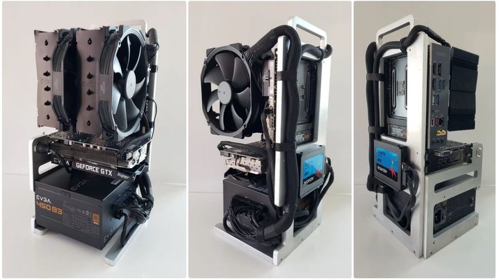 Nietypowa obudowa mini ITX wygląda jak wieszak na podzespoły