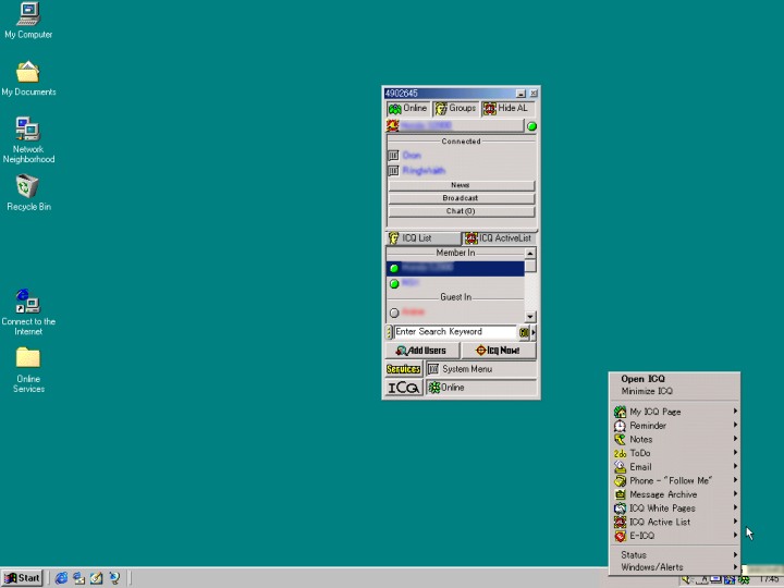 ICQ również działa obecnie jako Messenger i klient VoIP, ale jego historia sięga 1996 roku. Pięć lat później miał już ponad 100 milionów użytkowników. ICQ posiadał funkcję wyszukiwania losowych osób po kraju zamieszkania czy zainteresowaniach, co prowadziło do zawierania wirtualnych znajomości z ciekawymi ludźmi z całego świata – wtedy jeszcze szansa na spotkanie po drugiej stronie jakiejś zboczonej lub szalonej osoby była dość mała. Pamiętam, że raz zaczepiła mnie studentka z Brazylii, która pisała pracę o Polsce i chciała wypytać o różne rzeczy „u źródeł” – nasza znajomość przetrwała dzięki ICQ kilka dobrych lat!