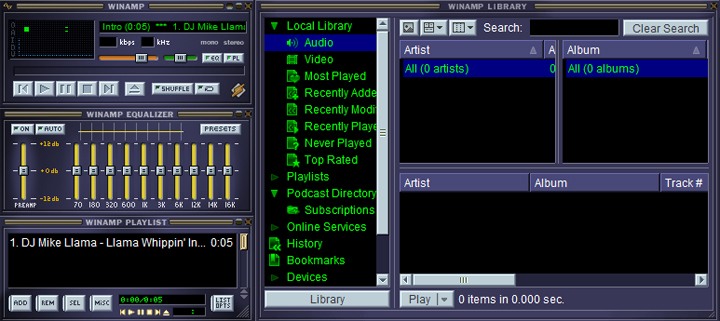 A do słuchania służył właśnie WinAMP, który nie tylko odtwarzał MP3, ale i pozwalał tworzyć swoje playlisty, biblioteki plików, no i pozwalał na wgrywanie „skórek”, czyli zmianę wyglądu np. na klasyczną wieżę Hi-Fi. Do 2001 roku słynny program ściągnięto z sieci ponad 60 milionów razy. WinAMP był wtedy najpopularniejszą aplikacją na Windowsa. To właśnie wtedy w sieci toczyły się niekończące się dyskusje o wyższości formatu FLAC nad MP3 i o tym, jak MP3 w jakości 192 kbps jest lepsze od „szumiącego” 128 kbps.
