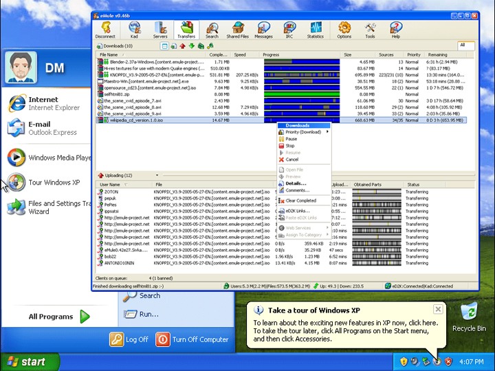 Służyły do tego takie programy, jak Kazaa, eDonkey i eMule. Początkowo była to jednak metoda głównie dla cierpliwych, bo prędkość pobierania była pojęciem względnym. Ściągnięcie jednej płyty CD, czyli ok. 700 MB, często oznaczało zostawienie włączonego komputera na noc albo kilkudniowe sesje – takie były uroki pierwszych stałych łączy o prędkości 128 kbps, typu SDI od Telekomunikacji Polskiej S.A. W dodatku ściągnięcie pliku wcale nie oznaczało, że dostało się to, co chciało. Ówczesne trolle internetowe często wstawiały pod gorącym tytułem jakąś staroć albo film „dla dorosłych”, nie wspominając o łatwości zainfekowania komputera jakimś wirusem z takiej zdobyczy z sieci.